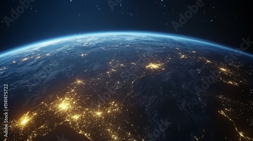 Night planet earth from space with light lines of communication and connection. Business and finance, concept. Global communications system and the World Wide Web. Technologies and communications.