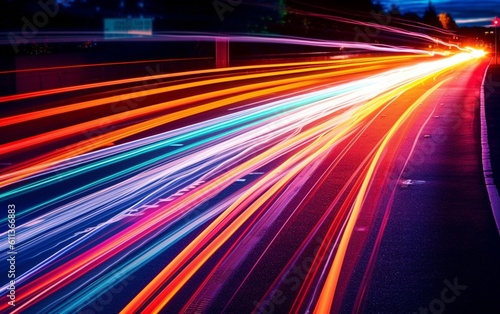 Night Rhythms: Mesmerizing Abstract Light Trails in the Urban Tapestry - High-Quality Wallpaper, Generative AI