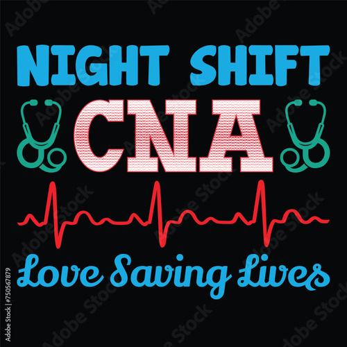 Night Shift CNA Love Saving Lives Heartbeat Typography T-shirt Design Vector