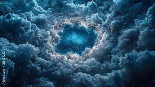 Night sky, clouds parting revealing glowing center, dramatic cloudscape background