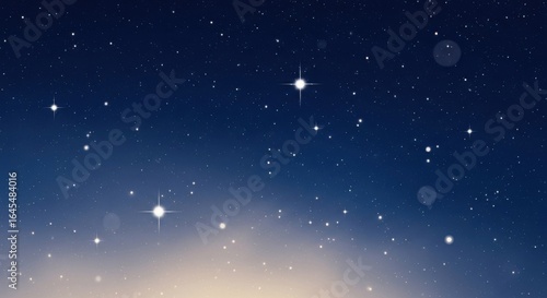 Night Sky Filled with Bright Stars and Glowing Horizon in Deep Blue Darkness