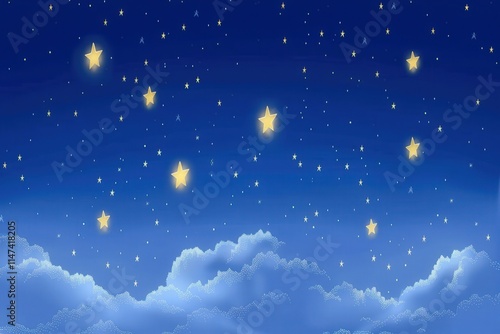 Night sky starlit event magical landscape digital art serene atmosphere dreamy viewpoint