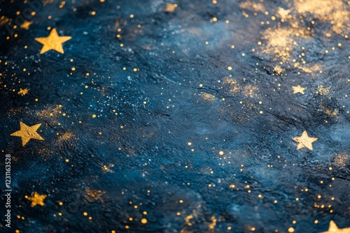 Night Sky Texture Gold Stars on Dark Blue Sparkle Background