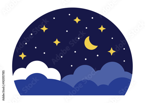Night Sky with Stars Vector Illustration Deep Space Scene with Glowing Celestial Bodies Design