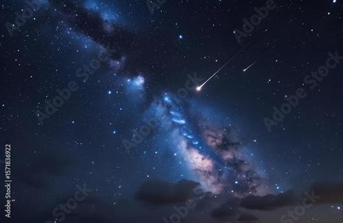 Night Sky with the Milky Way Galaxy and a Meteor Shower