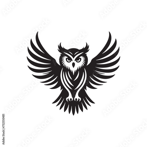 Night's Guardian: Black Vector Owl Silhouette - Capturing the Mystery and Majesty of Nature's Nocturnal Hunter. Minimalist Owl illustration.