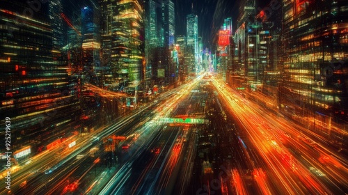 Nighttime Cityscape: Urban Jungle in Motion with Long Exposure Light Trails