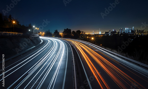 Nighttime Highway Curves Towards Vibrant City Skyline