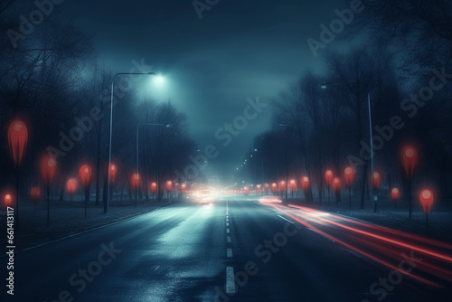 Nighttime Traffic Trails: Long Exposure Street Image of Vibrant Traffic Light Trails - Created using generative AI tools