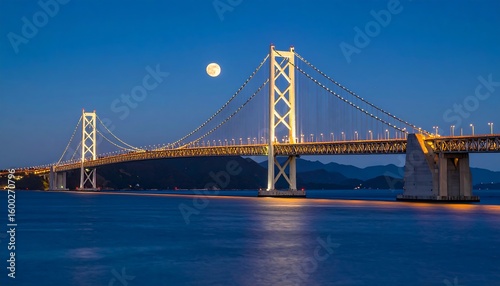 Nighttime view of illuminated cable-stayed bridge