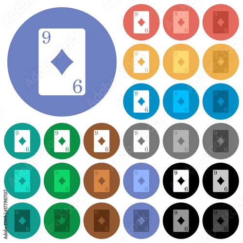 Nine of diamonds card round flat multi colored icons