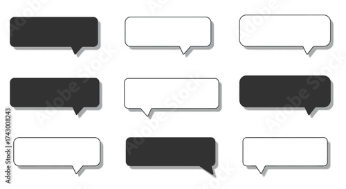 Nine roundedrectangle speech bubbles alternating in color arranged in three rows of three on a white background each with a soft shadow