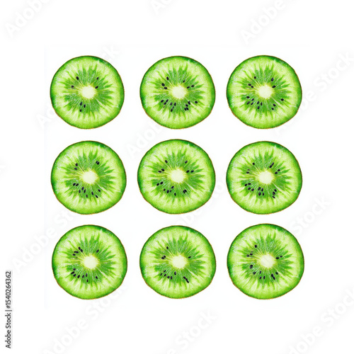 Nine Slices of Fresh Kiwi Fruit on White Background