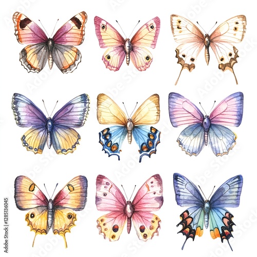 Nine Watercolor Butterflies: A Delightful Display of Nature's Beauty