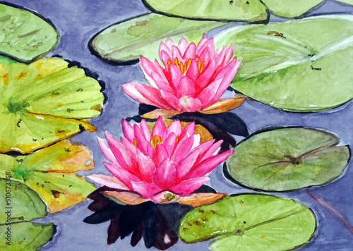 Ninfee rosa, dipinto ad acquerello