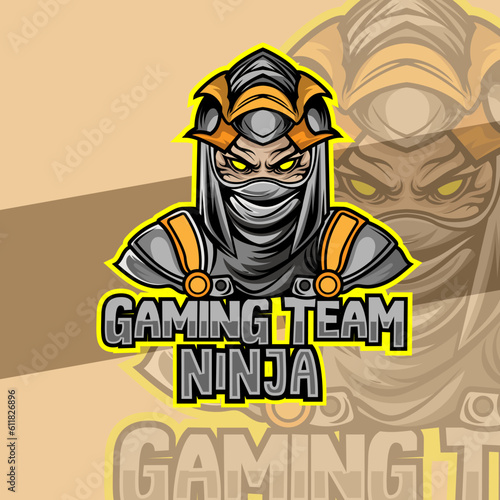 ninja in mask esport logo mascot design emblem mascot for sport Team. Concept style for badge, emblem and tshirt printing. angry ninja illustration for sport and esport team.