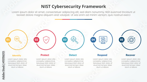 NIST cybersecurity framework infographic concept for slide presentation with big outline circle horizontal with 5 point list with flat style