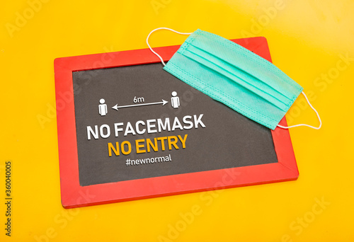 No Face Mask No Entry sign social distancing measures after covid-19 pandemic.