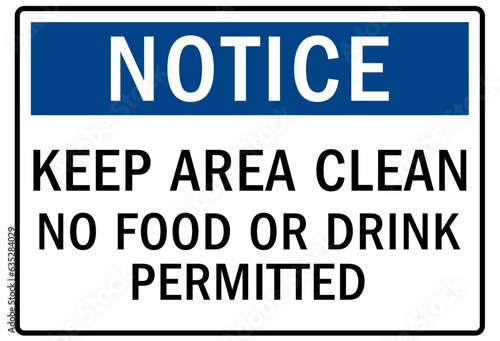 No food or drink warning sign and labels keep area clean. No food or drink permitted