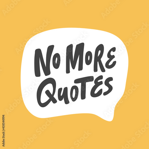 No More Quotes. Hand drawn sticker bubble white speech logo. Good for tee print, as a sticker, for notebook cover. Calligraphic lettering vector illustration in flat style.