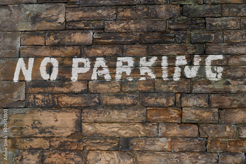 No parking sign painted onto a wall