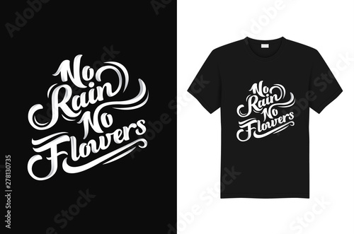 No Rain No Flowers slogan and Quote T-shirt typography design.