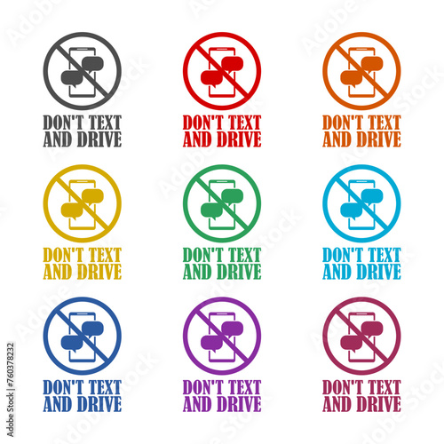 No texting, no cell phone use while driving icon isolated on white background. Set icons colorful