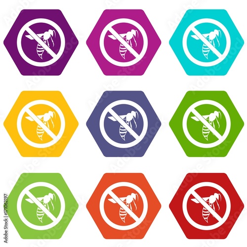 No wasp sign icon set color hexahedron