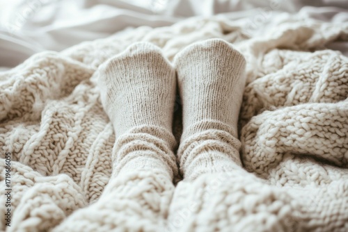 Ноги в мягких теплых носках на кровати