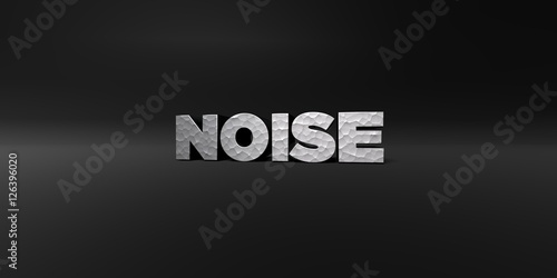 NOISE - hammered metal finish text on black studio - 3D rendered royalty free stock photo. This image can be used for an online website banner ad or a print postcard.