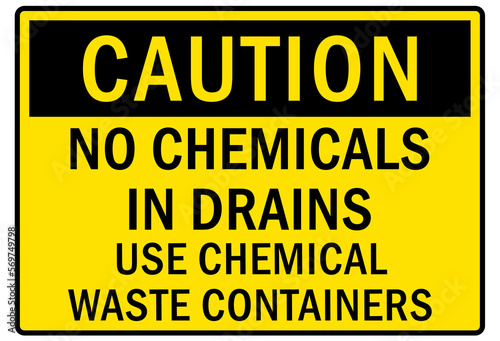 Non chemical storage sign and labels no chemicals in drains use chemical waste container
