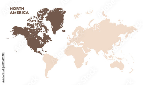 North America in world map-14, Map of North America, highlighted on the world map, North America on the world map, Satellite view, North America's location on the globe.