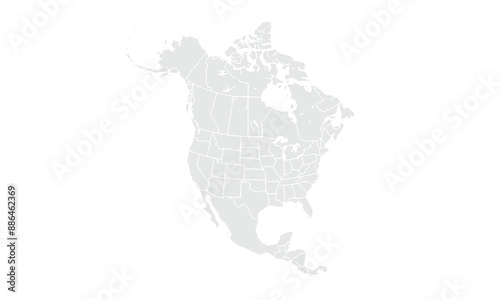 North America map Grayscale,isolated on white background for website layouts,background,education, precise,customizable,Travel worldwide,map silhouette backdrop,earth geography, political,reports.