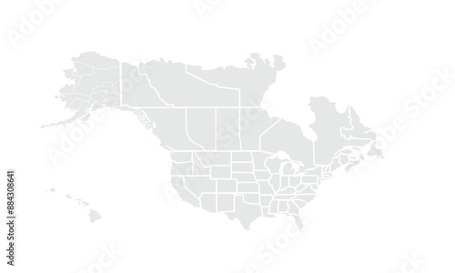 North America map illustration,isolated on white background.for website layouts, background, education, precise, customizable, Travel worldwide, map silhouette backdrop, earth geography, political.