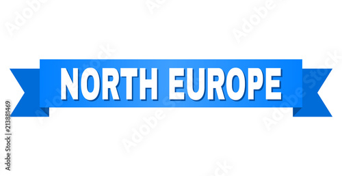 NORTH EUROPE text on a ribbon. Designed with white title and blue stripe. Vector banner with NORTH EUROPE tag.