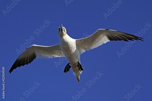 Northern gannet (Sula bassana) flying, Helgoland, Schleswig-Holstein, Germany, Europe