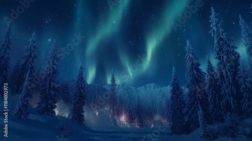 "Northern Glow: Snow-Capped Pines Under the Aurora"