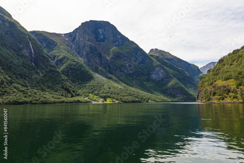 Norway Aurlang fjord on a cloudy summer day