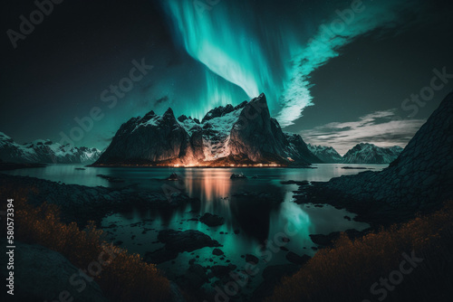 Norway Fjord Aurora Borealis northern lights | Generative AI