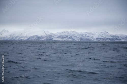 Norwegian Sea near Skjervoya island. Wintertime at the sea in Northern Norway