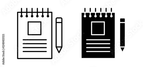 Notebook icons pack vectors in black flat and strokes