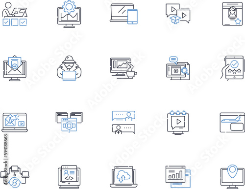 Notebook line icons collection. Paper, Pen, Writing, Jotting, Noting, Scribbling, Memo vector and linear illustration. Diary,Journal,Sketchbook outline signs set