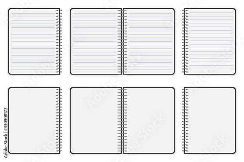 notebook mockup isolated. Realistic book cover. Book cover for paper design. Ruled notepads. Vector illustration. Stock image. EPS 10.