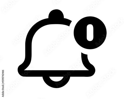 Notification Bell Icon Alert Symbol with Badge, Simple Design for Website or App UI