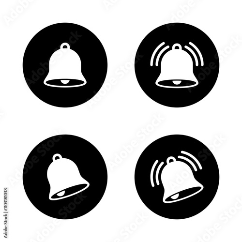 Notification bell icon set on black circle. Alarm reminder sign symbol
