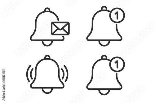 Notification bell line icon set. Alert symbol for incoming inbox message. Ringing bell and new notification number sign for web and app user interface. Vector illustration.