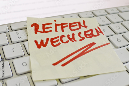 Notiz auf Computer Tastatur: Reifen wechseln