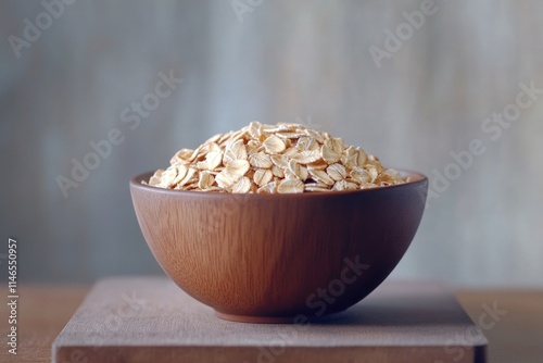Nourishing Oat Flakes Displayed in a Rustic Bowl on Weathered Wooden Surface