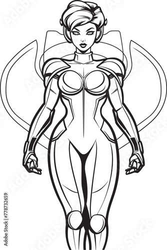 Nova Crusader Futuristic Female Superhero Icon Techno Valkyrie Vector Logo with Sci Fi Heroine