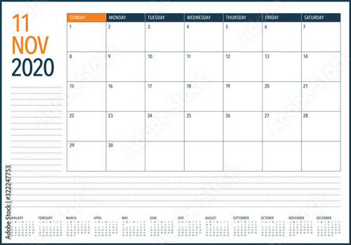 November 2020 desk calendar vector illustration